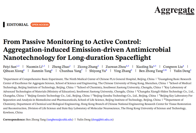 近日,北京理工大學醫學技術學院鄧玉林教授團隊與香港中文大學(深圳)唐本忠教授、西南交通大學周祚萬教授課題組合作,在空間站...